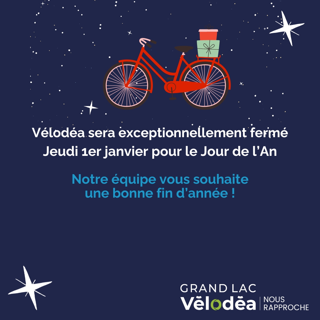 🎄Votre service vélos Vélodéa sera exceptionnellement fermé jeudi 1er janvier pour le Jour de l’An 🎇