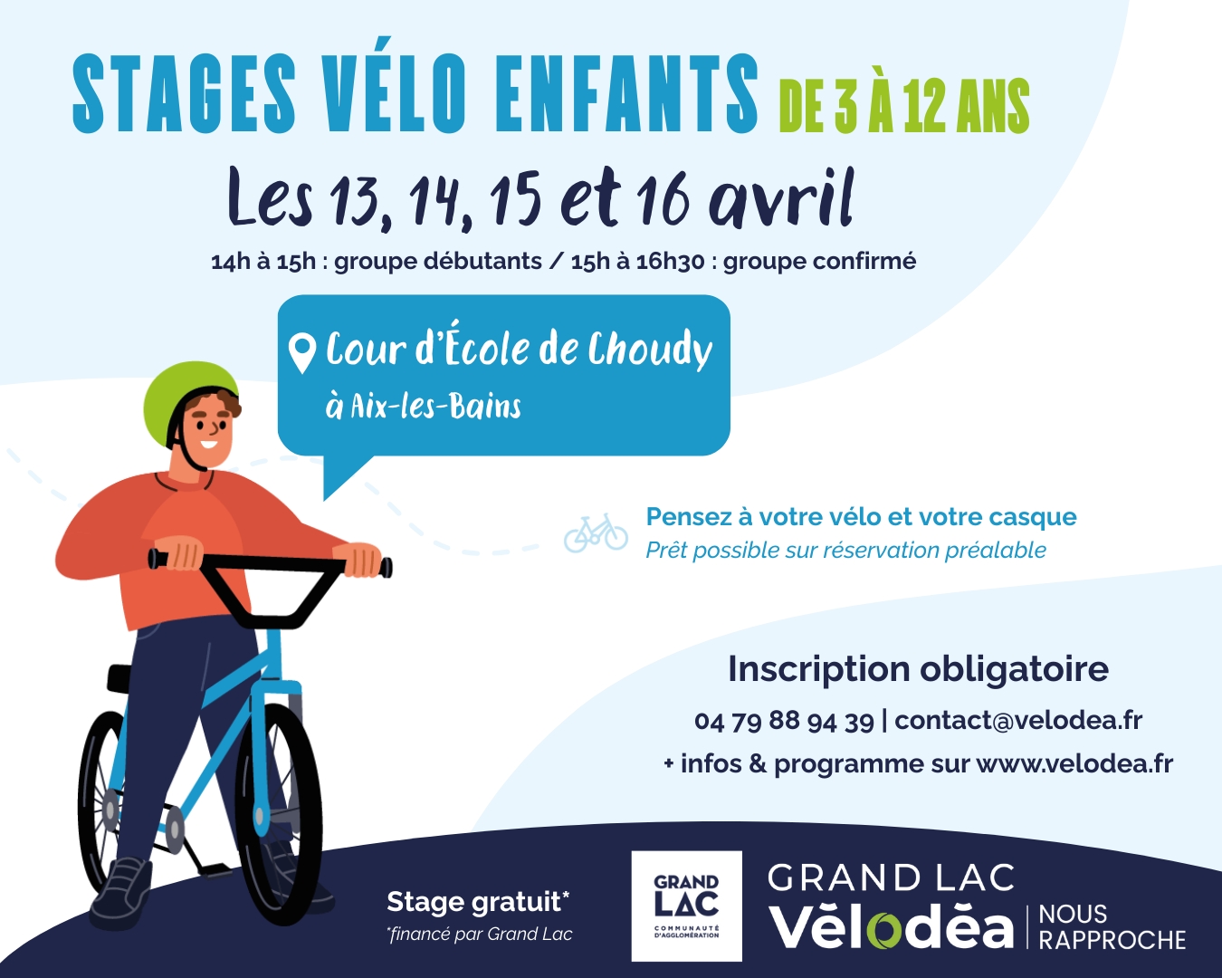 Les lundi 13, mardi 14, mercredi 15 et jeudi 16 avril, Vélodéa vous propose un nouveau stage vélo à destinations des plus jeunes à Aix-les-Bains !